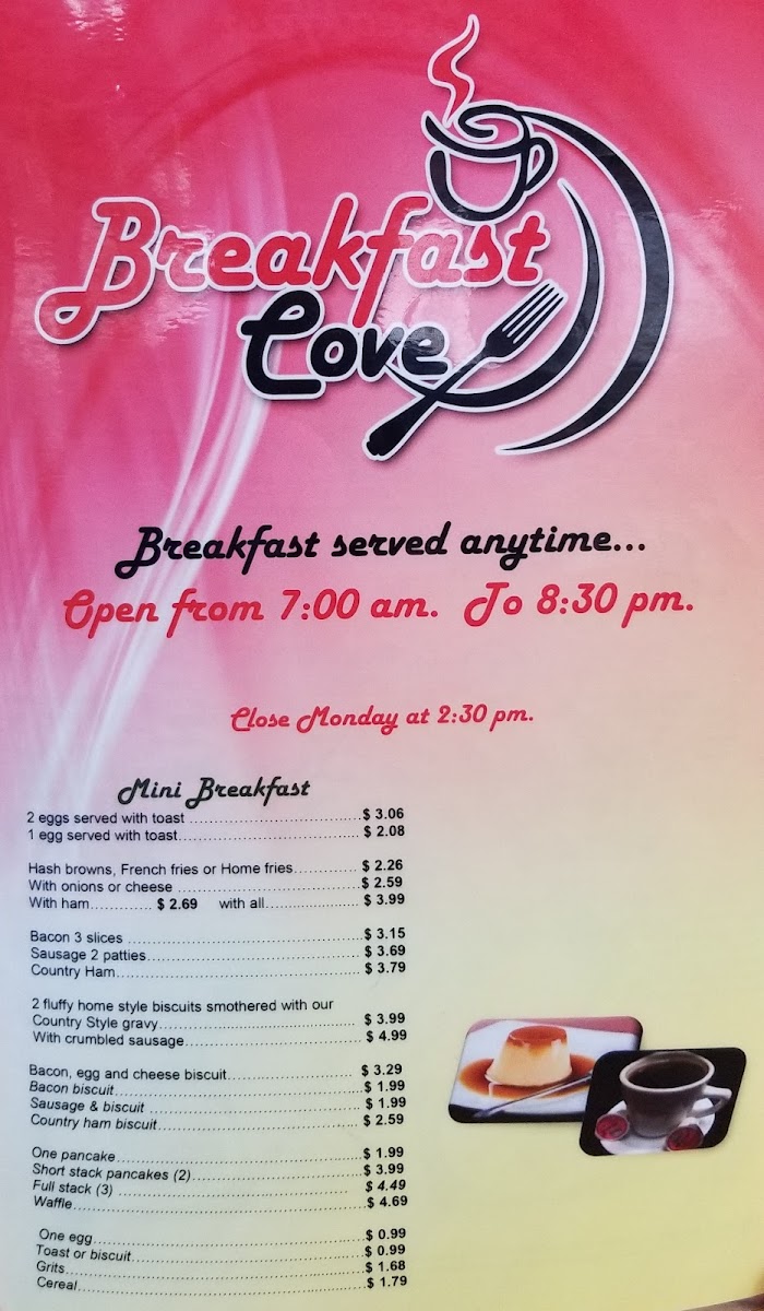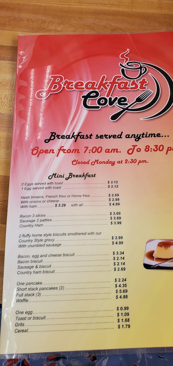Welcome to Breakfast Cove, located in Covington, TN, where your mornings are transformed into a delightful culinary experience. This charming diner specializes in classic breakfast dishes that are sure to satisfy any appetite. Choose from the #1 Grande Breakfast featuring hearty options like eggs, hash browns, and fluffy pancakes for just $13.89, or indulge in the soothing flavors of Chuletas & Eggs for $13.79.
